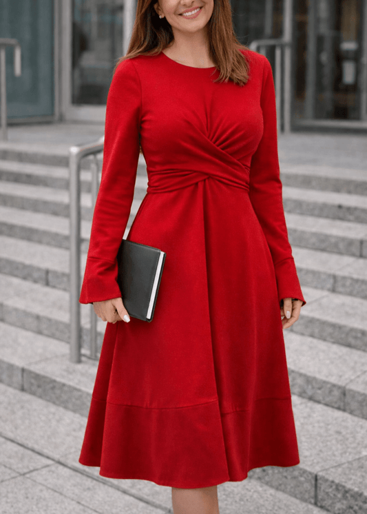 Olga midi haljina sa detaljem u struku i rukavima